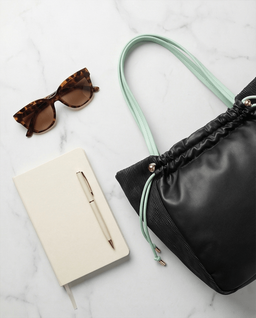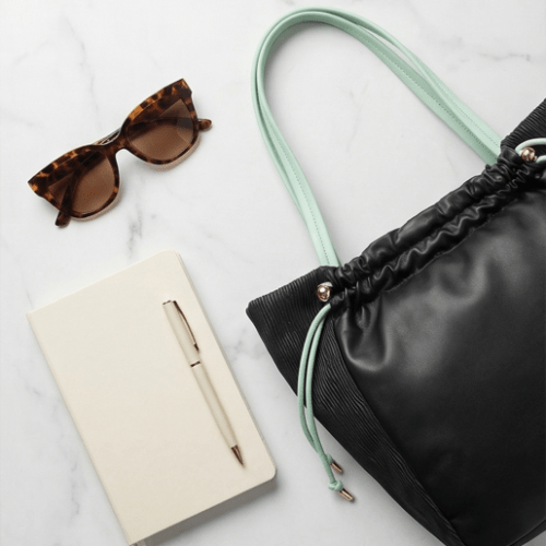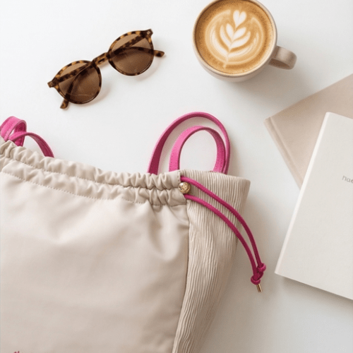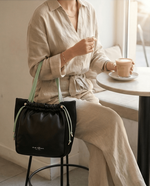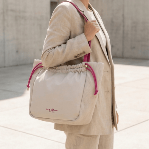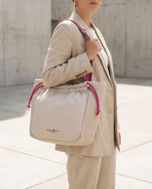 Bolso de la marca pepe moll tamaño grande disponible en dos colores negro con turquesa y en beige con fuxia