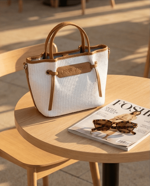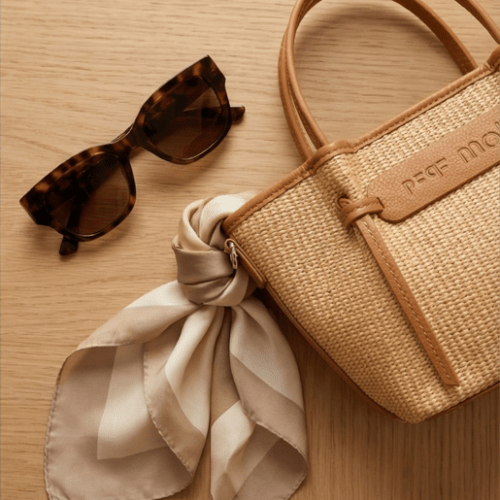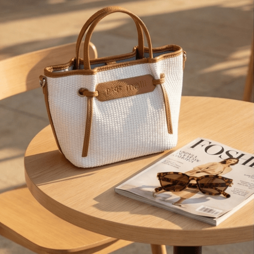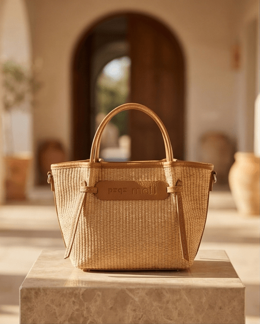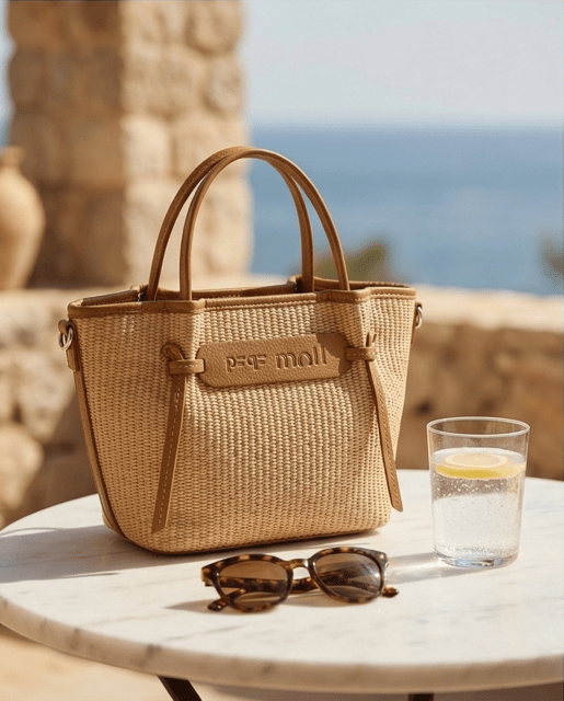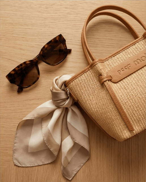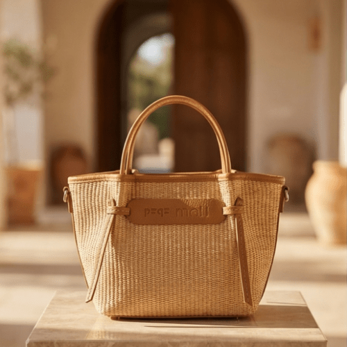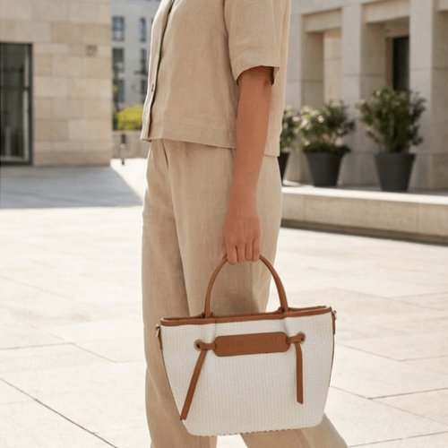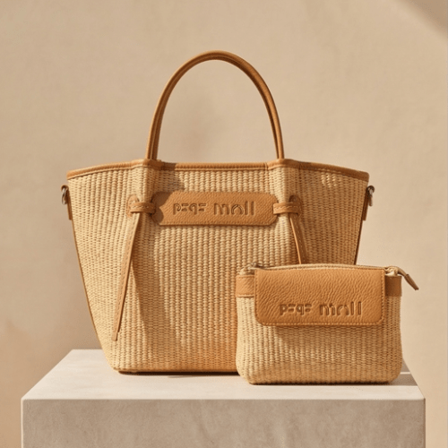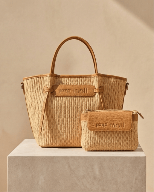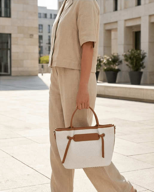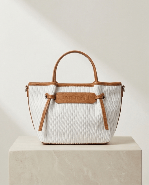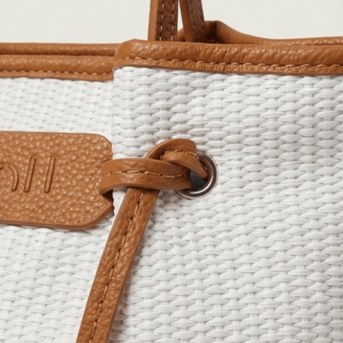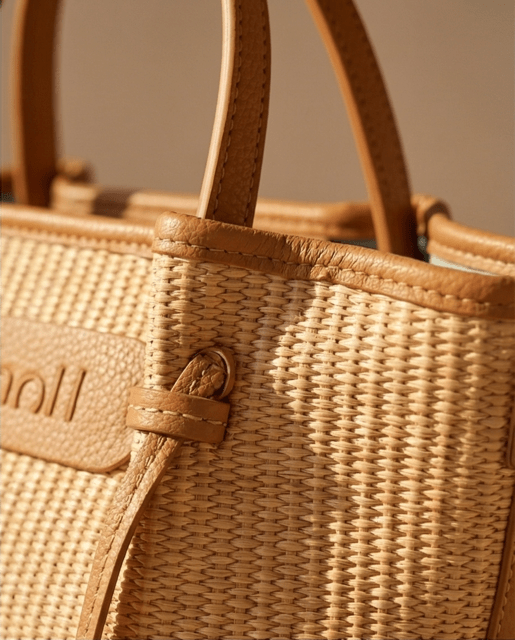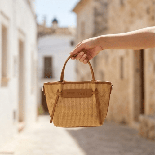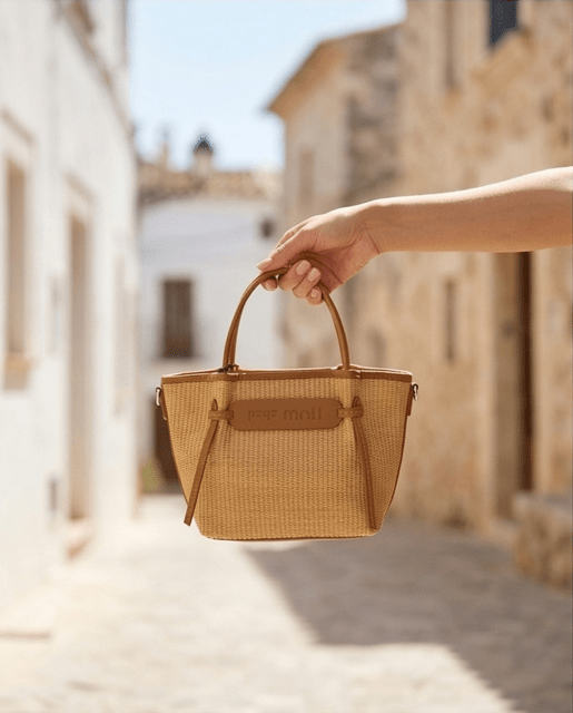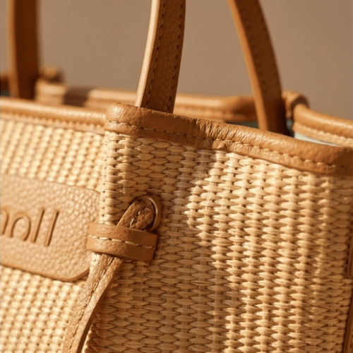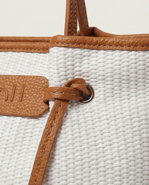 Bolso rafia con detalle de nudos, con cierre de cremallera, asas de mano más bandolera regulable