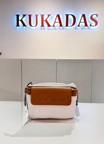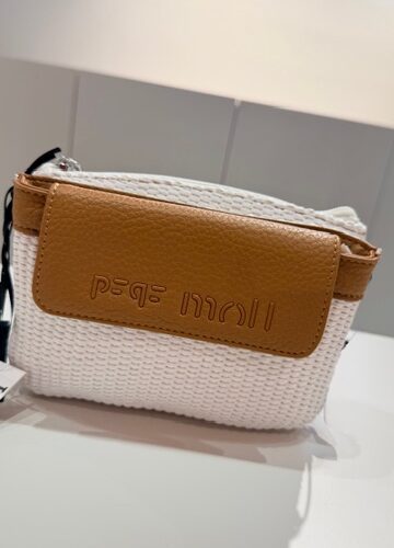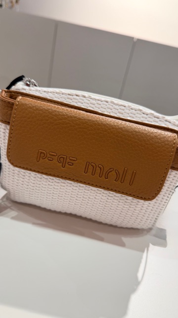 Bandolera rafia con doble departamento uno de ellos con cierre cremallera. Asa de cruzar regulable.