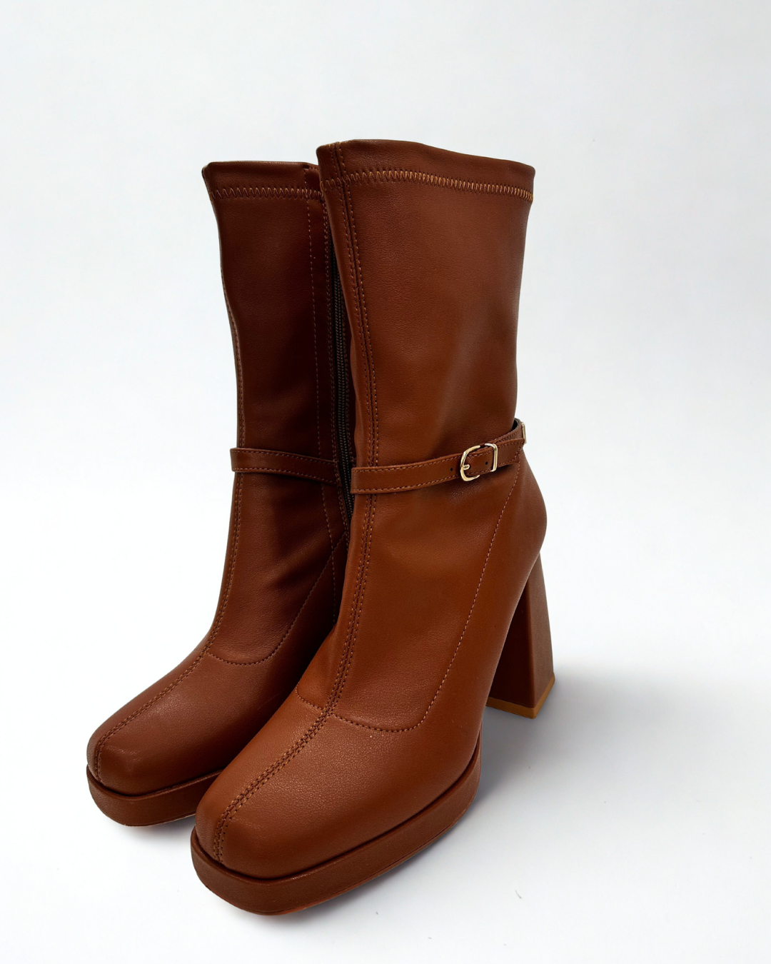 BOTA A MEDIA CAÑA DE LA MARCA LOLA CASADEMUNT BY MAITE EN COLOR CAMEL