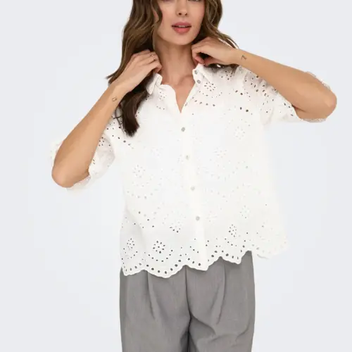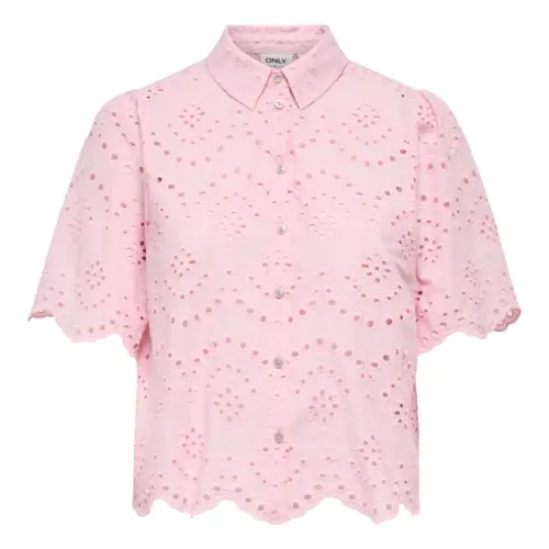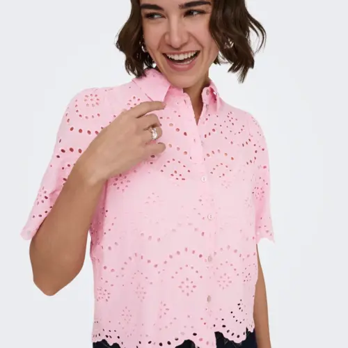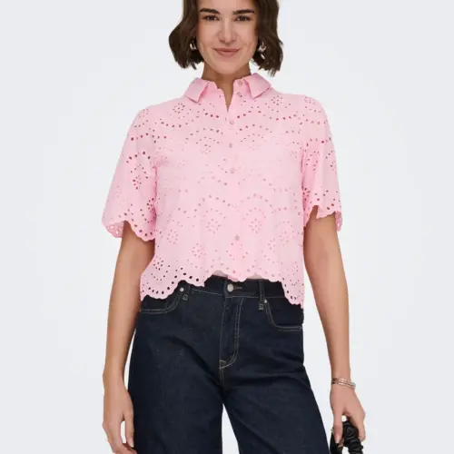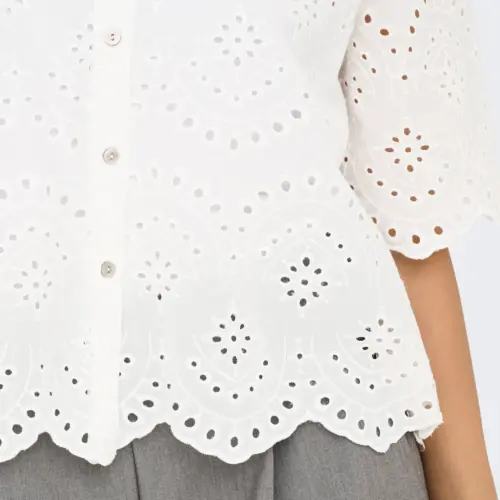 Añade colores suaves y detalles sutiles a tu guardarropa con una camisa femenina fácil de combinar con unos jeans clásicos o una falda entallada. - Artículo : Camisa - Cuello : Cuello de camisa - Manga : Manga corta - Cierre : Cierre de botones - Detalles : Detalles de bordado - Corte : Corte loose