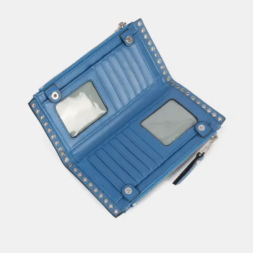 La Cartera 261253 de Pepe Moll combina un diseño compacto con una estética sofisticada, ideal para quienes buscan organización en un formato elegante. Su estructura se define por líneas limpias y detalles metálicos que recorren el contorno, aportando una personalidad moderna que complementa perfectamente cualquier accesorio de la colección.