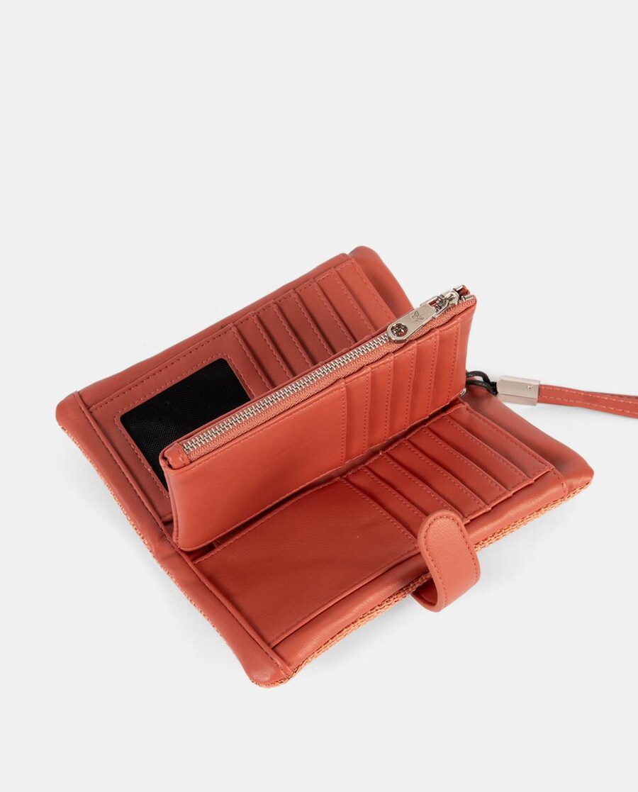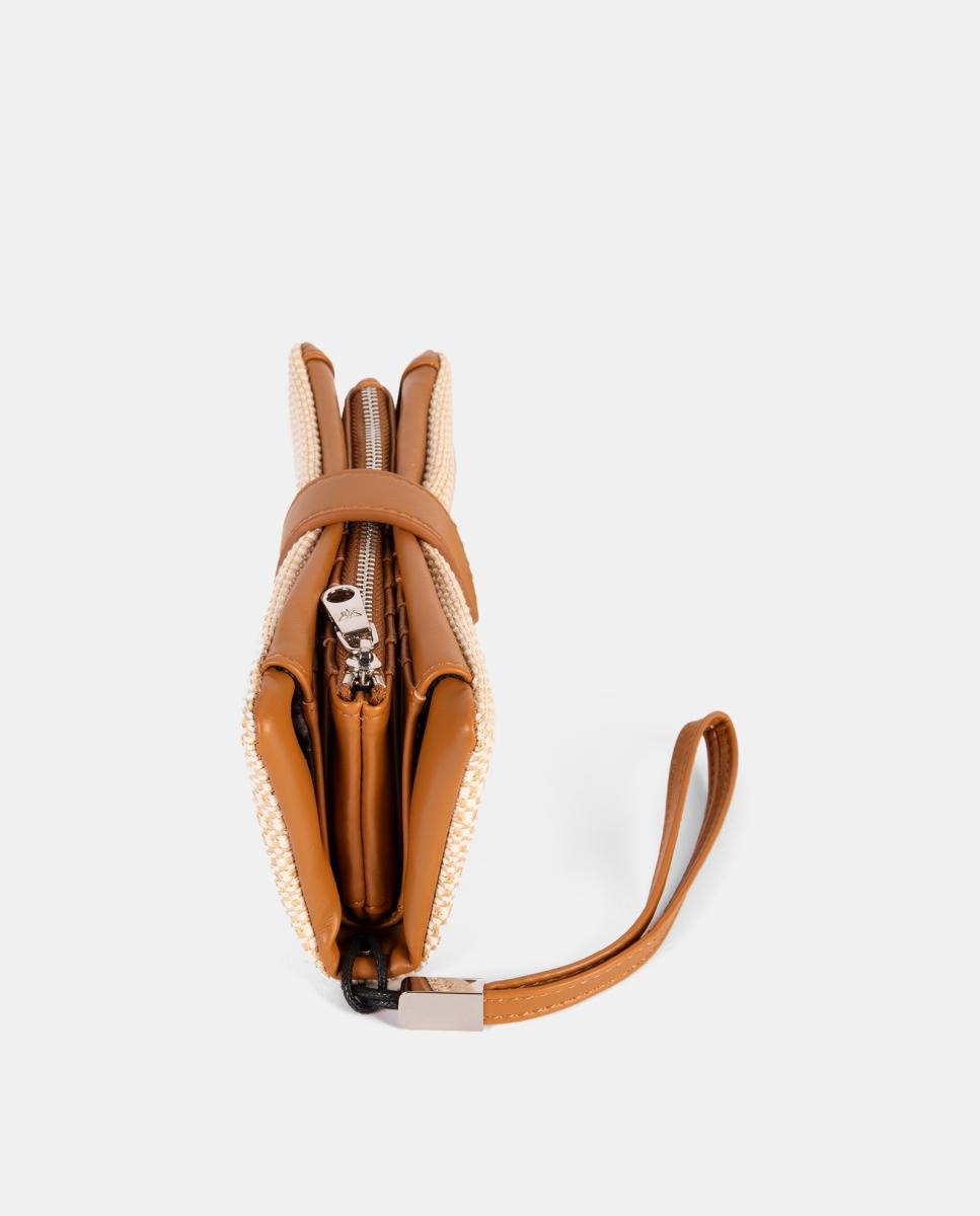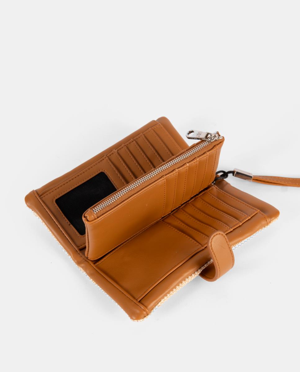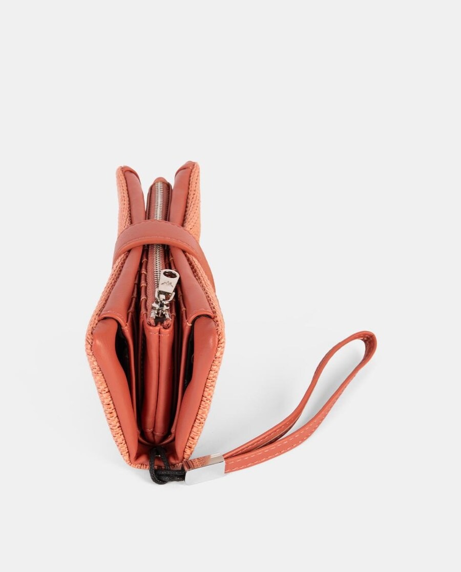 Monedero tarjetero, con departamento interior con cremallera. Cierre clip. Asa muñequera.