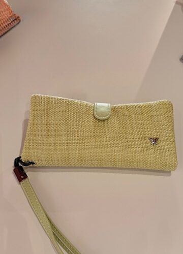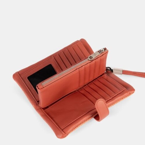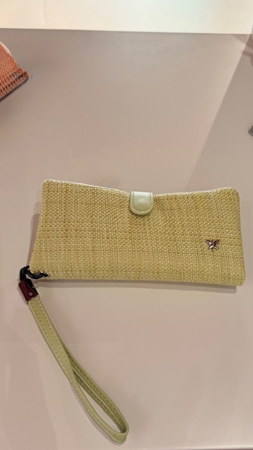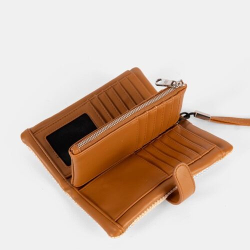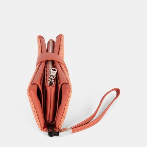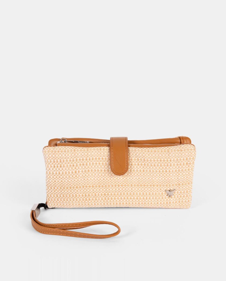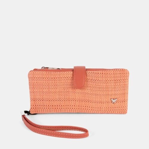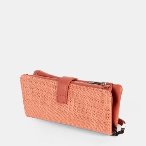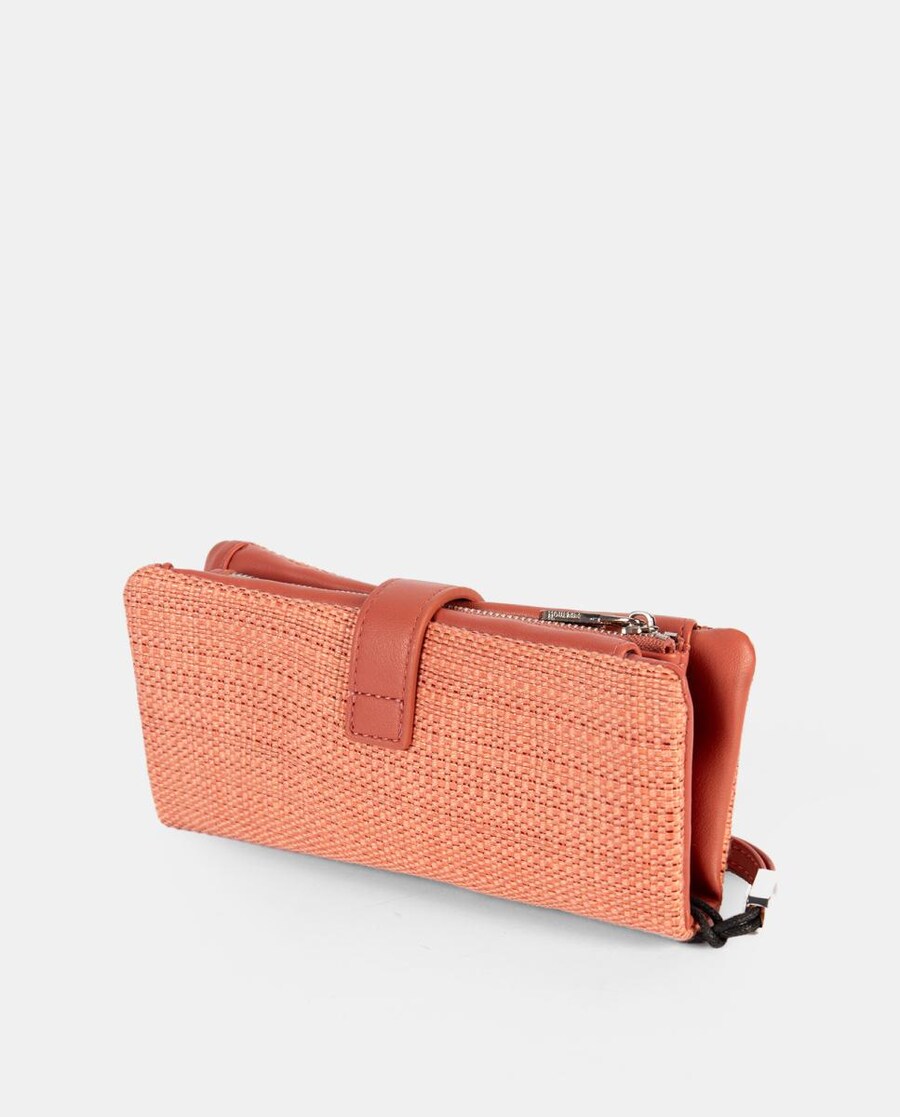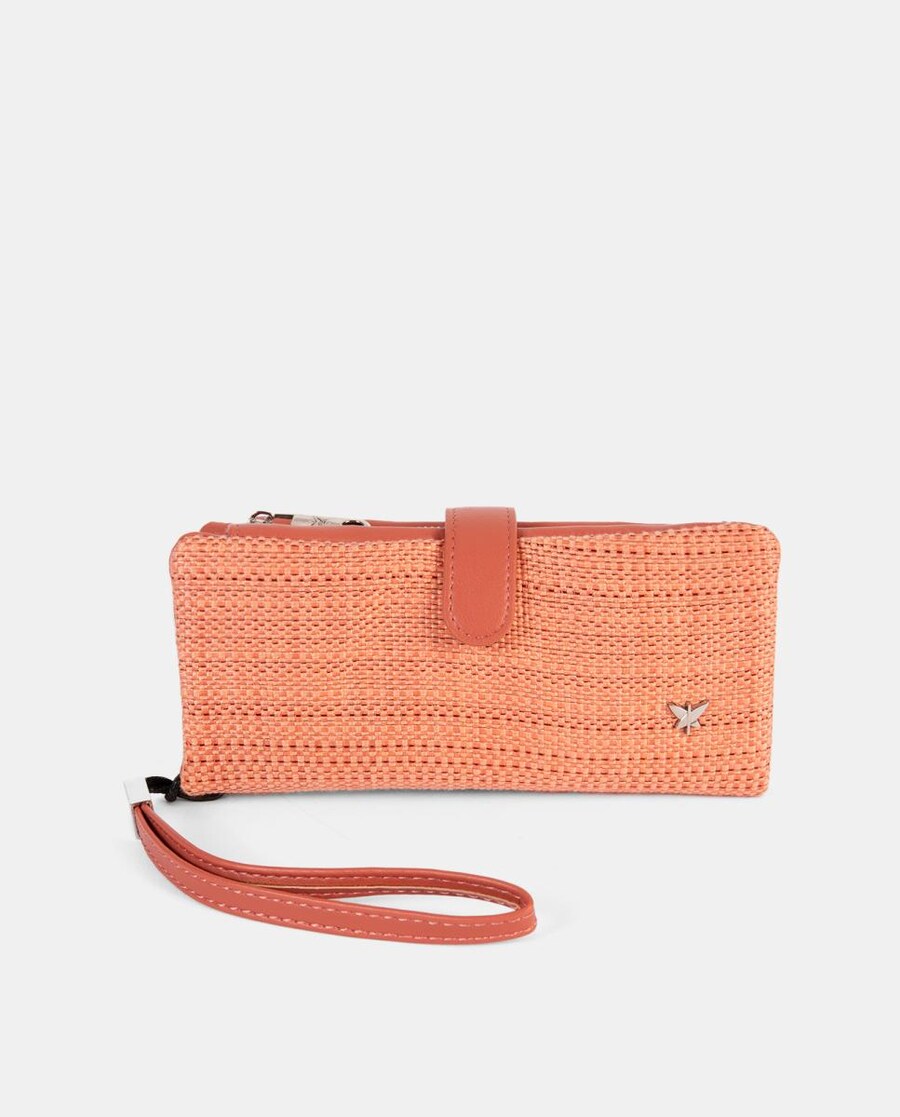 Monedero tarjetero, con departamento interior con cremallera. Cierre clip. Asa muñequera.