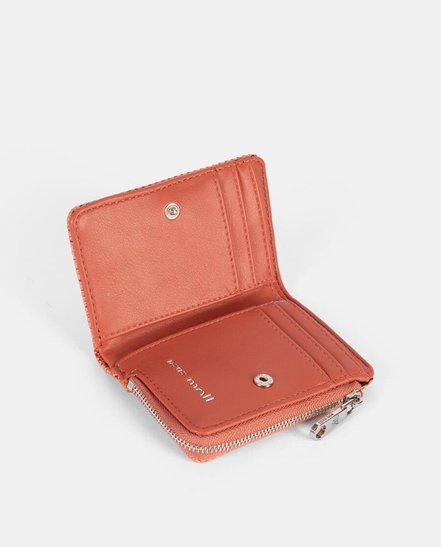 Monedero tarjetero, con departamento interior con cremallera. Cierre clip.