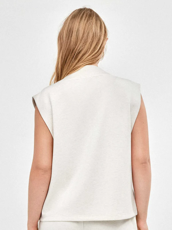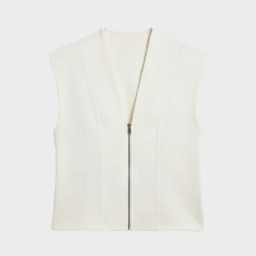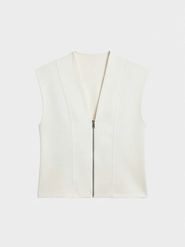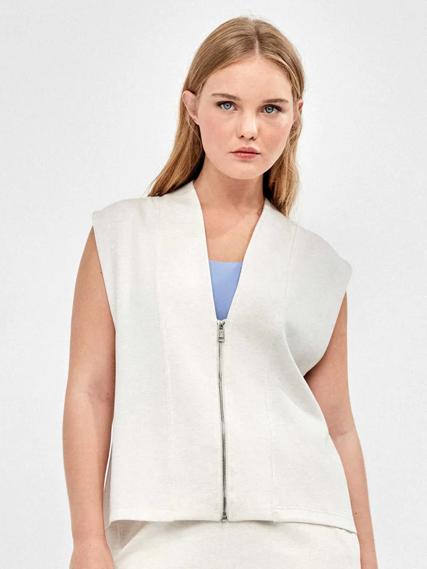 Chaleco deportivo cortes frontales y cremallera delantera double soft touch de aspecto minimalista. La particularidad de este tejido es su tacto extra suave tanto pot fuera como por dentro. Tiene una caída natural, no se arruga y asegura que el tejido mantenga su forma y su apariencia a pesar del uso y los lavados. Detalle de la presencia del logo en los tiradores de las cremalleras.