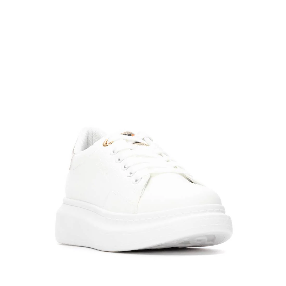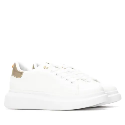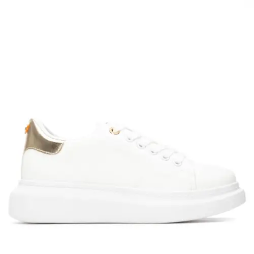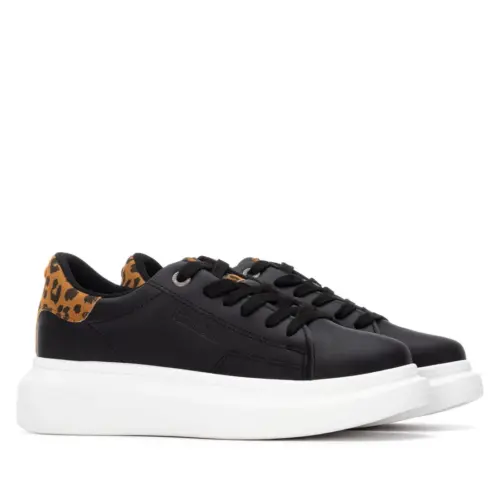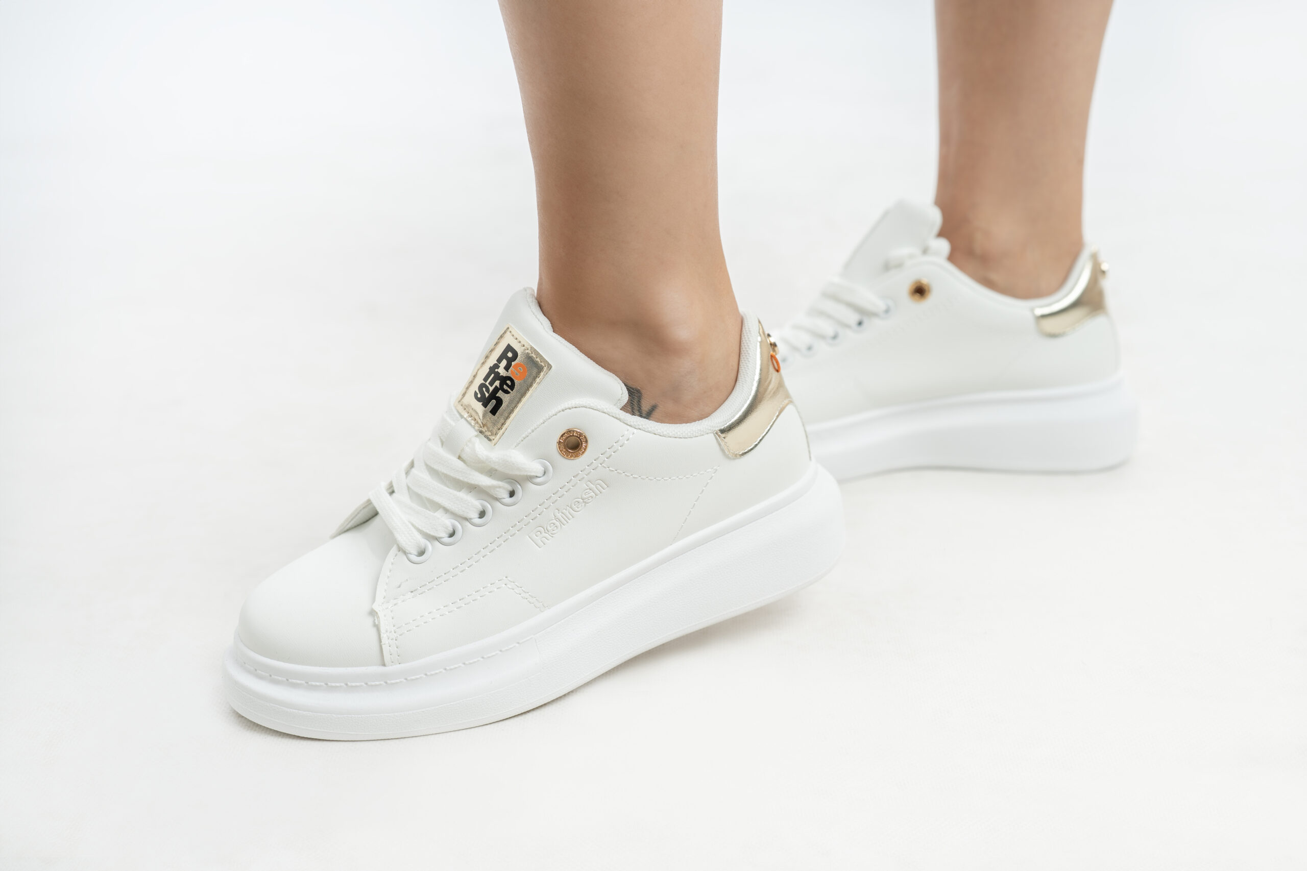 Zapatilla de mujer, de la marca Refresh. Fabricada en material que imita a la piel. Cordones regulables al tono. Cómoda planta. Gruesa suela blanca de goma antideslizante. Con plantilla extraíble. Este modelo ha obtenido el certificado vegano por la organización mundial PETA (Organización de los derechos de los animales).