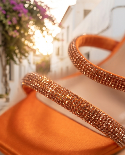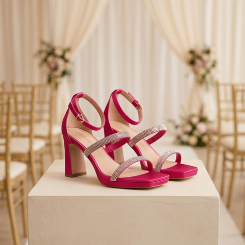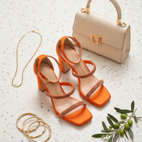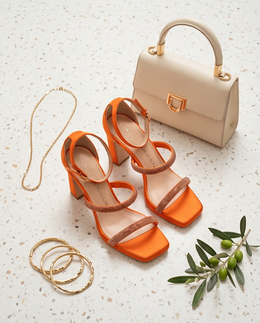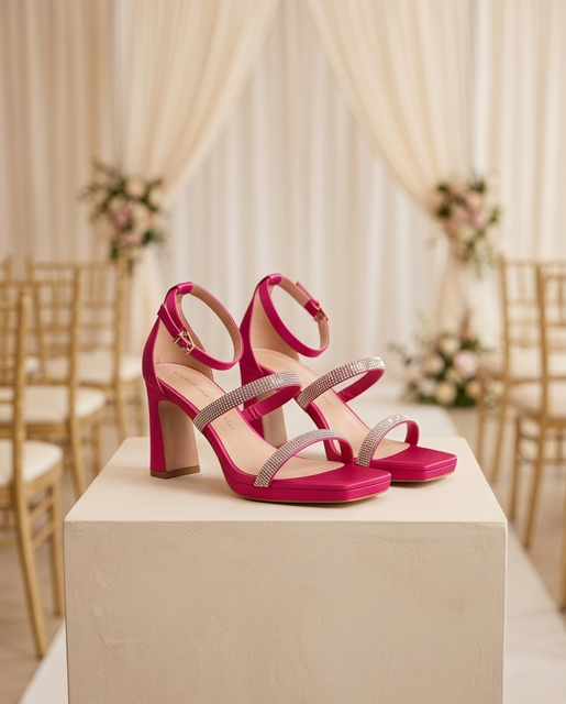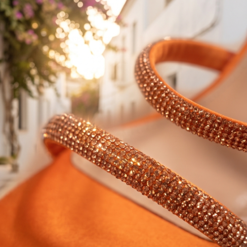 Zapatos de fiesta de la marca Lola Casademunt By Maite en color naranja o en fuxcia