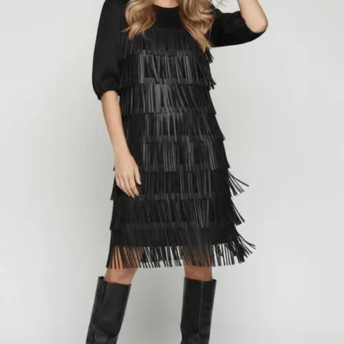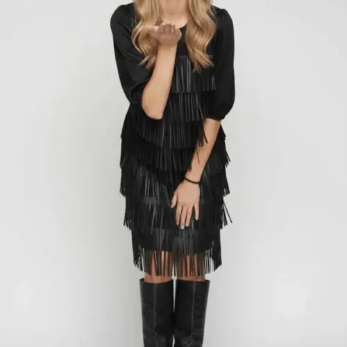 Vestido negro polipiel con flecos Lolitas&L